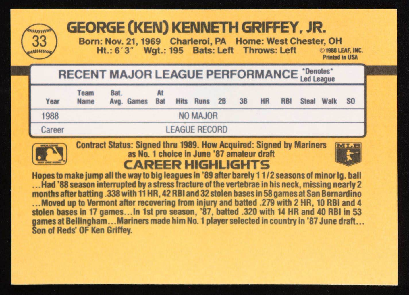 Ken Griffey Jr. 1989 Donruss #33 RR RC