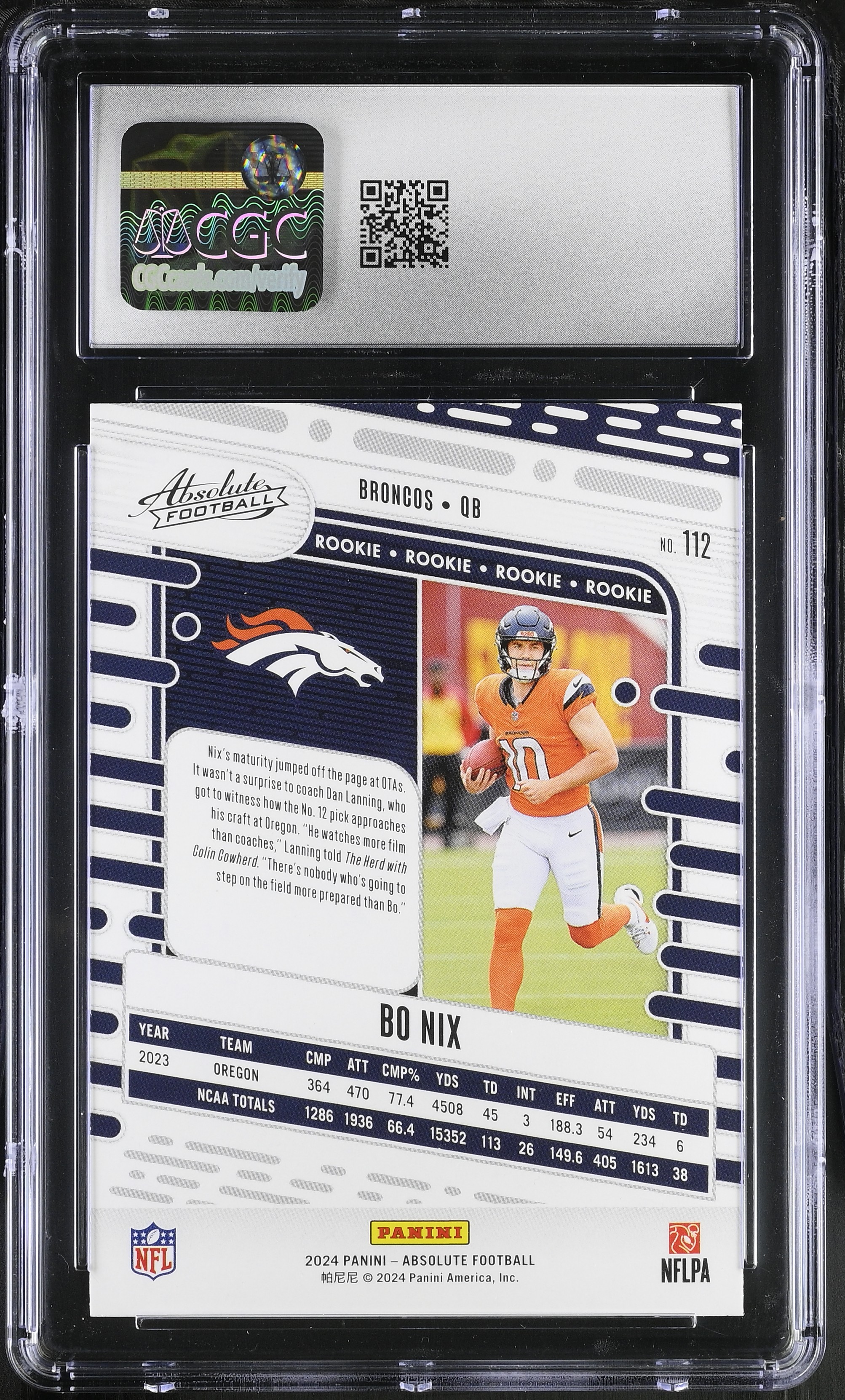 Bo Nix 2024 Absolute #112 RC (CGC 8)