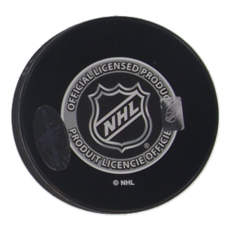 Chicago Blackhawks logo hockey puck. Hand-signed and inscribed by Bill Hay (HOF).