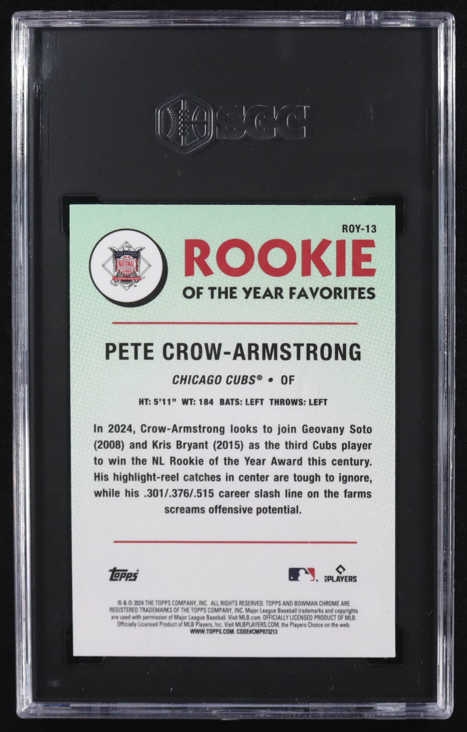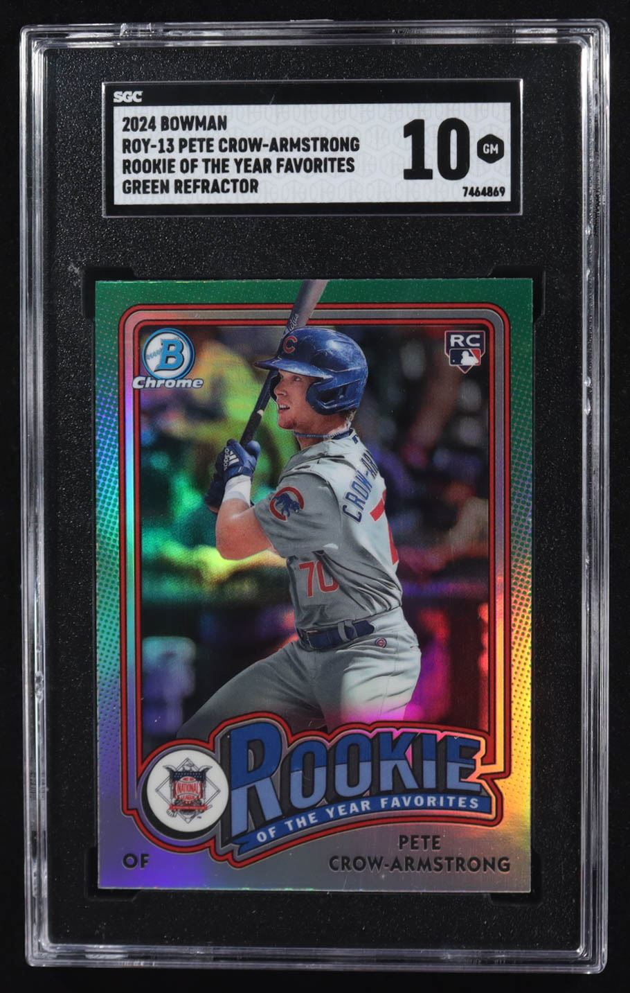 Pete Crow-Armstrong 2024 Bowman Chrome Rookie Of The Year Favorites Green Refractor #ROY-13 RC (SGC 10)