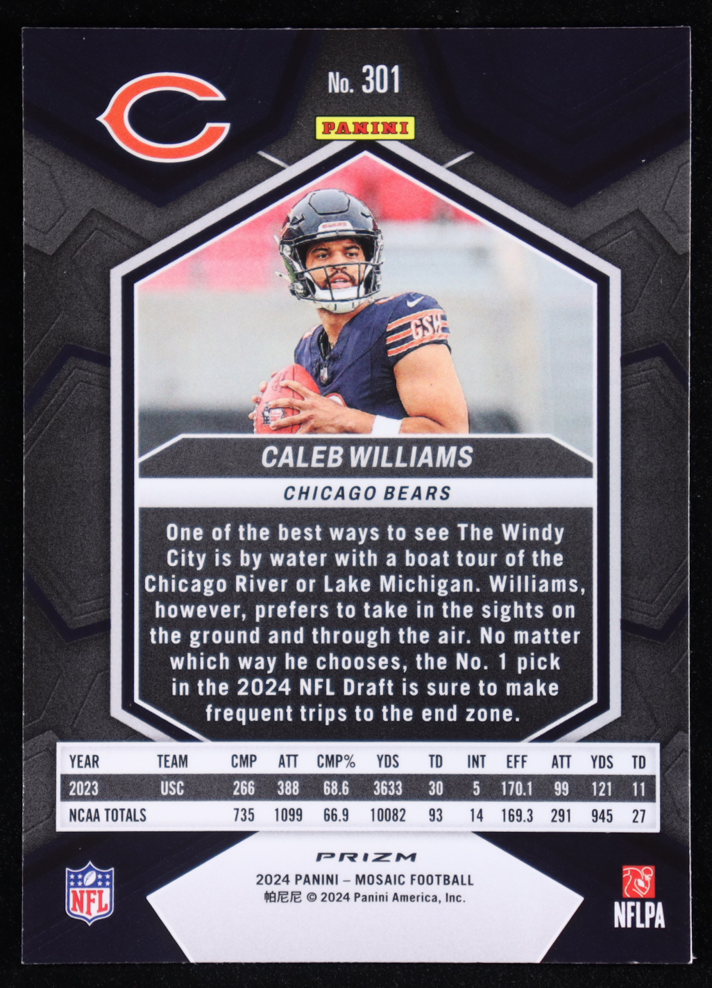 Caleb Williams 2024 Panini Mosaic Mosaic Camo Pink #301 RC