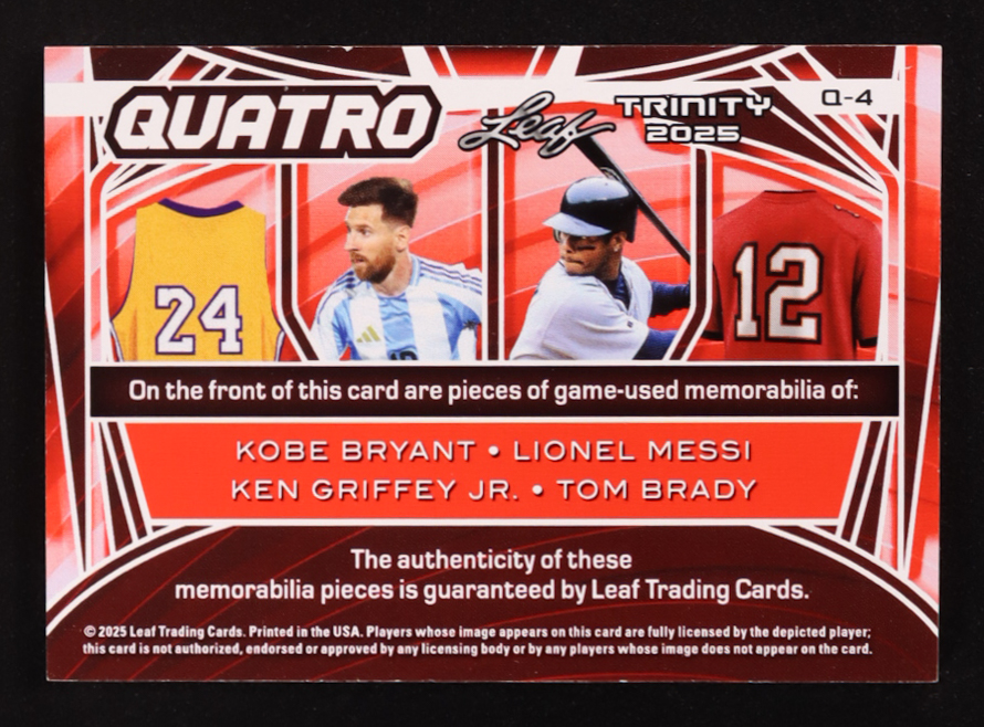 Kobe Bryant / Lionel Messi / Ken Griffey Jr. / Tom Brady 2025 Leaf Trinity Quatro Memorabilia Emerald #Q4 #7/8