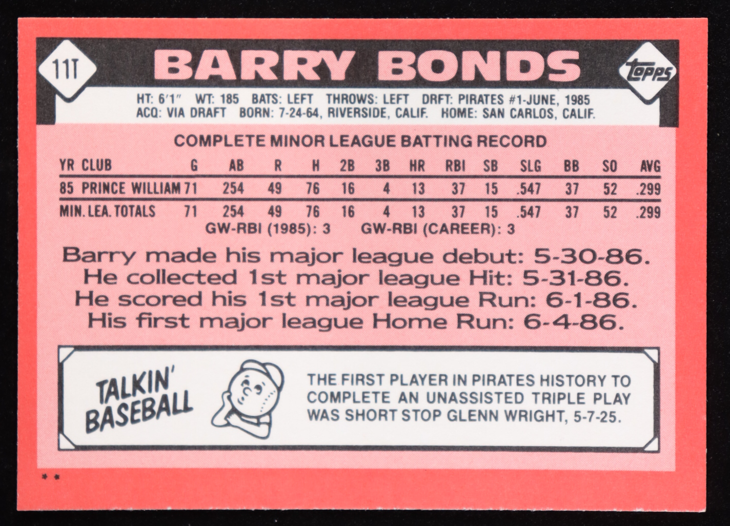 Barry Bonds 1986 Topps Traded #11T RC