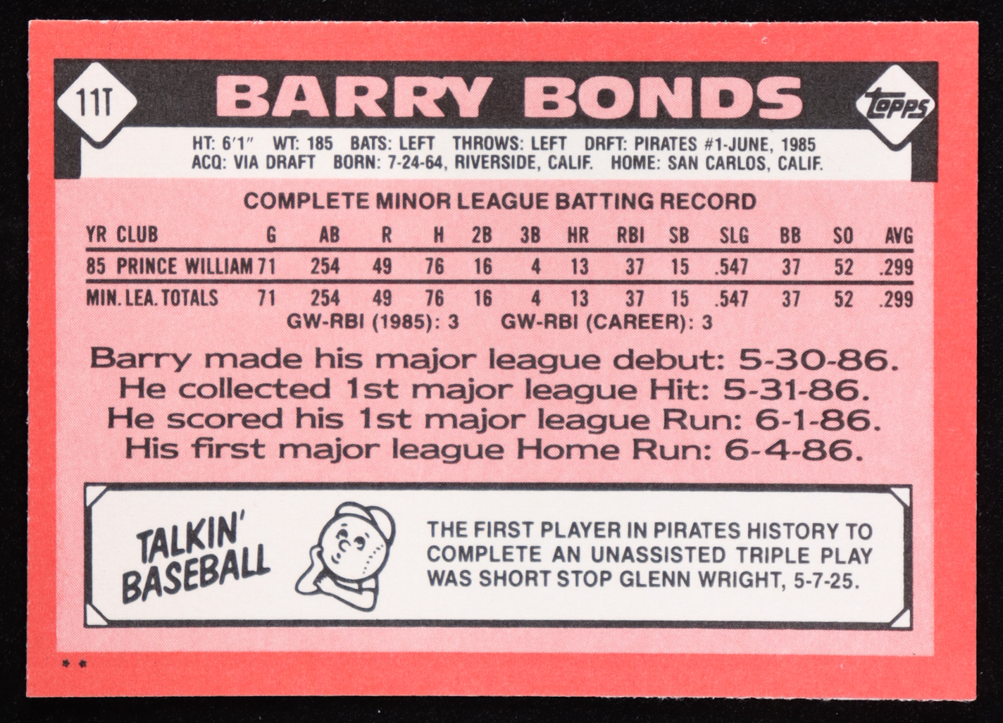 Barry Bonds 1986 Topps Traded #11T RC