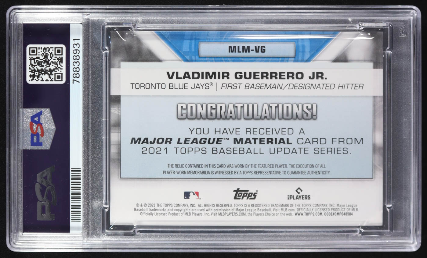 Vladimir Guerrero Jr. 2021 Topps Update Major League Materials Player-Worn #MLMVG (PSA 9)