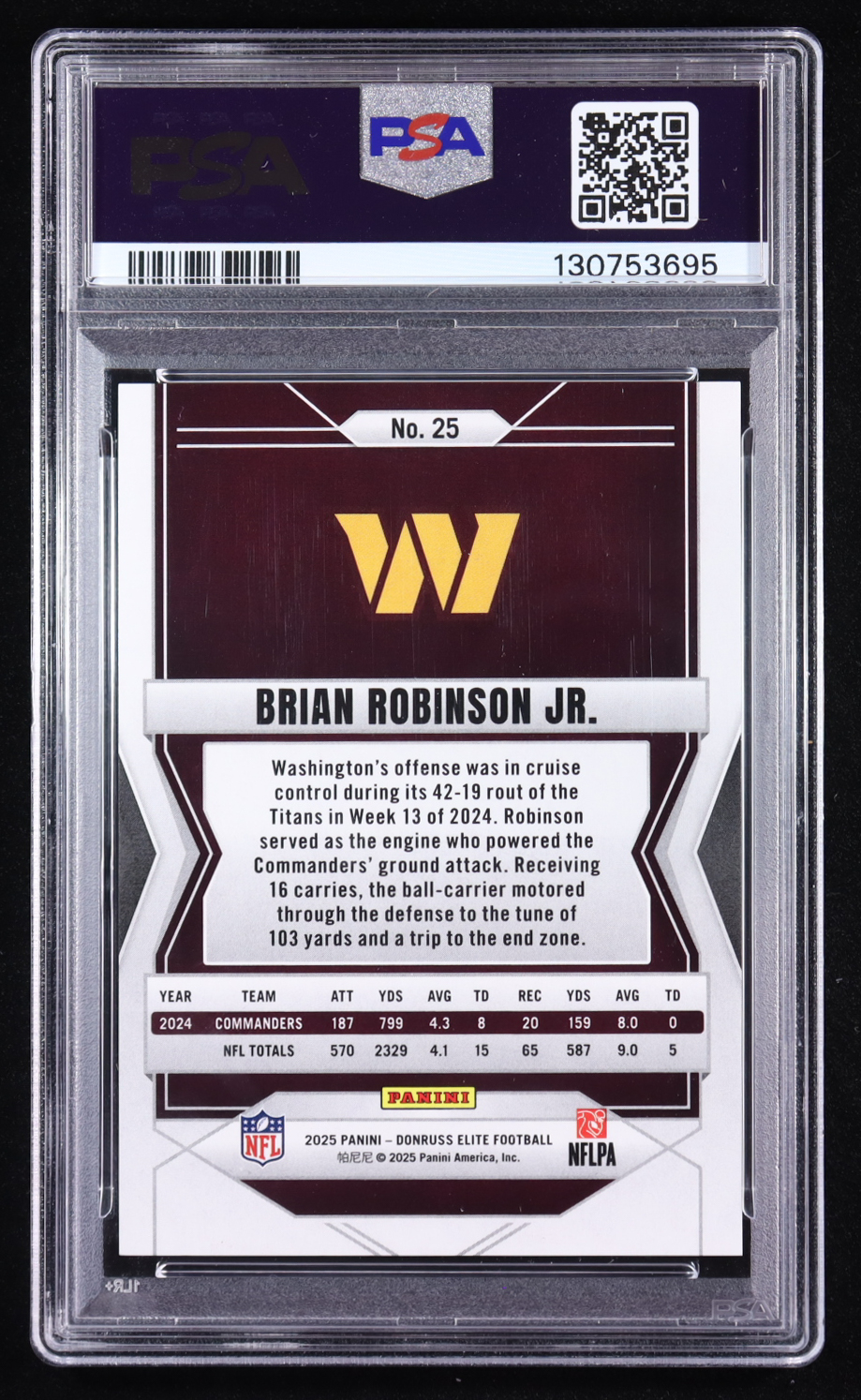 Brian Robinson Jr. 2025 Elite Razzle Dazzle #25 (PSA 9)