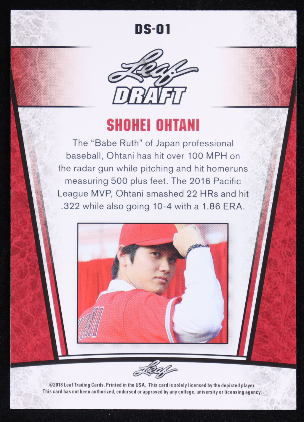 Shohei Ohtani 2018 Leaf Draft Silver #DS01 RC