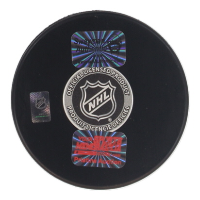 Boston Bruins logo hockey puck. Hand-signed by Jeremy Swayman.