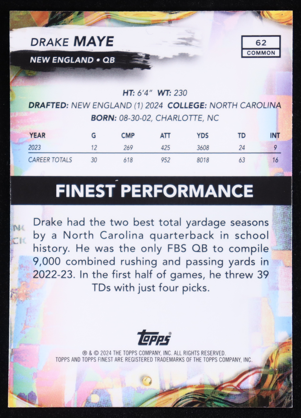 Drake Maye 2024 Finest Checkerboard Refractors #62 RC
