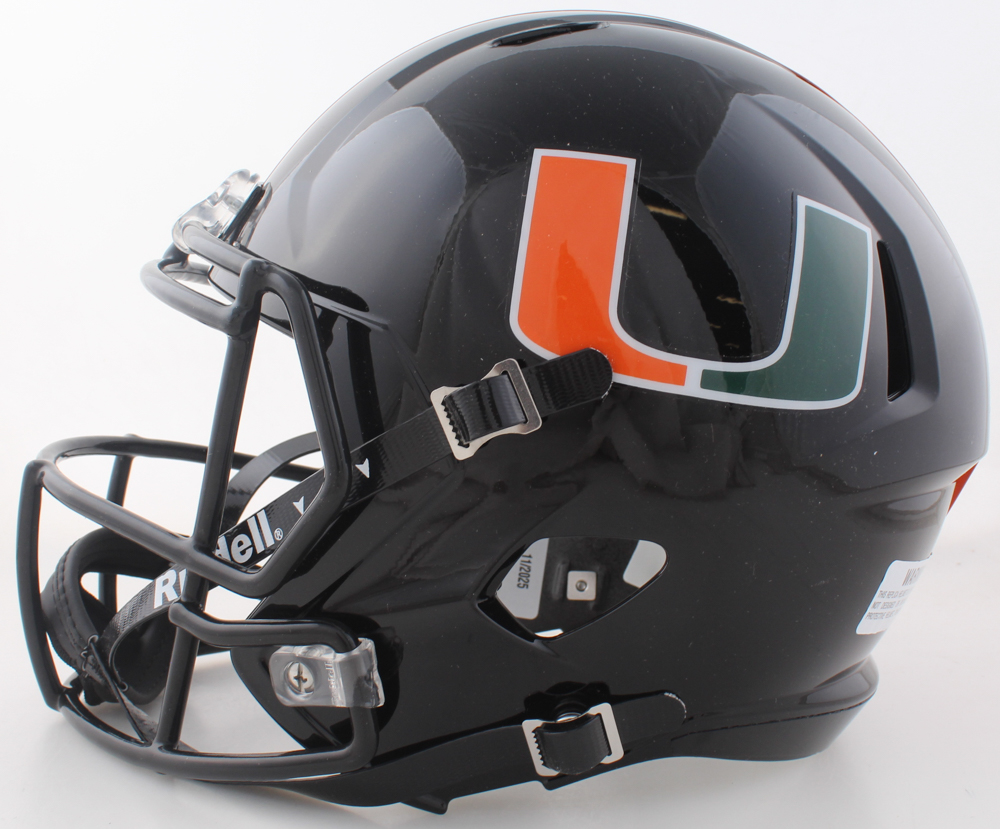 Riddell Miami Hurricanes full-size replica speed helmet. Hand-signed by Frank Gore.