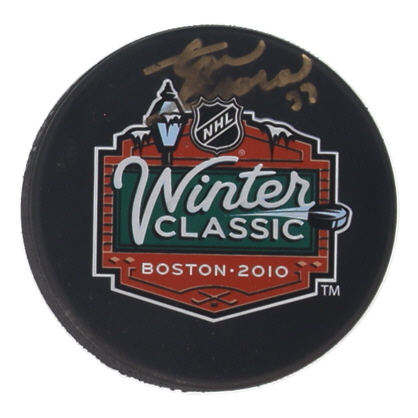 2010 Winter Classic logo hockey puck. Hand-signed by Zdeno Chara (Boston Bruins).