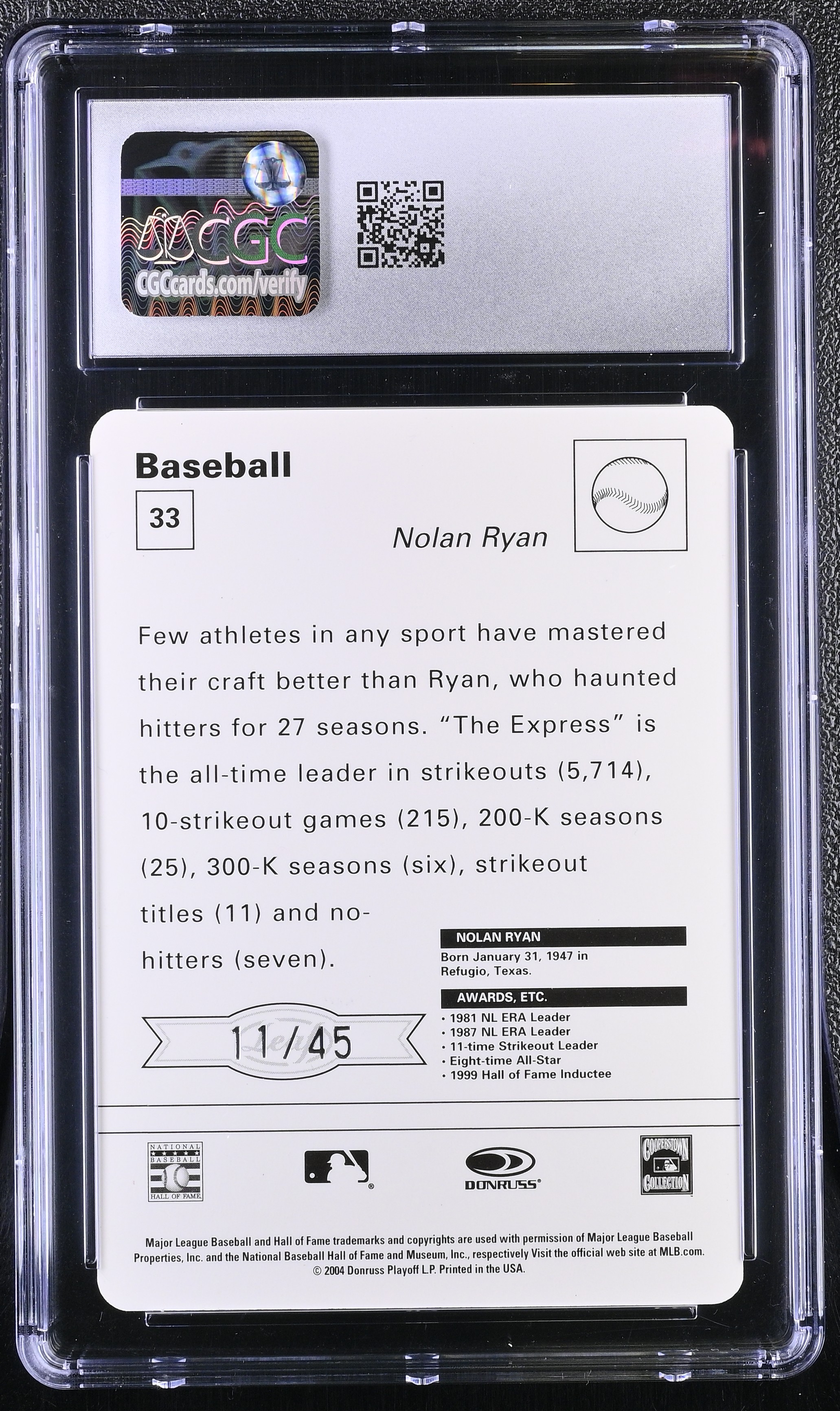 Nolan Ryan 2005 Leaf Sportscasters 45 Red Running-Glove #33 #11/45 (CGC 9.5)