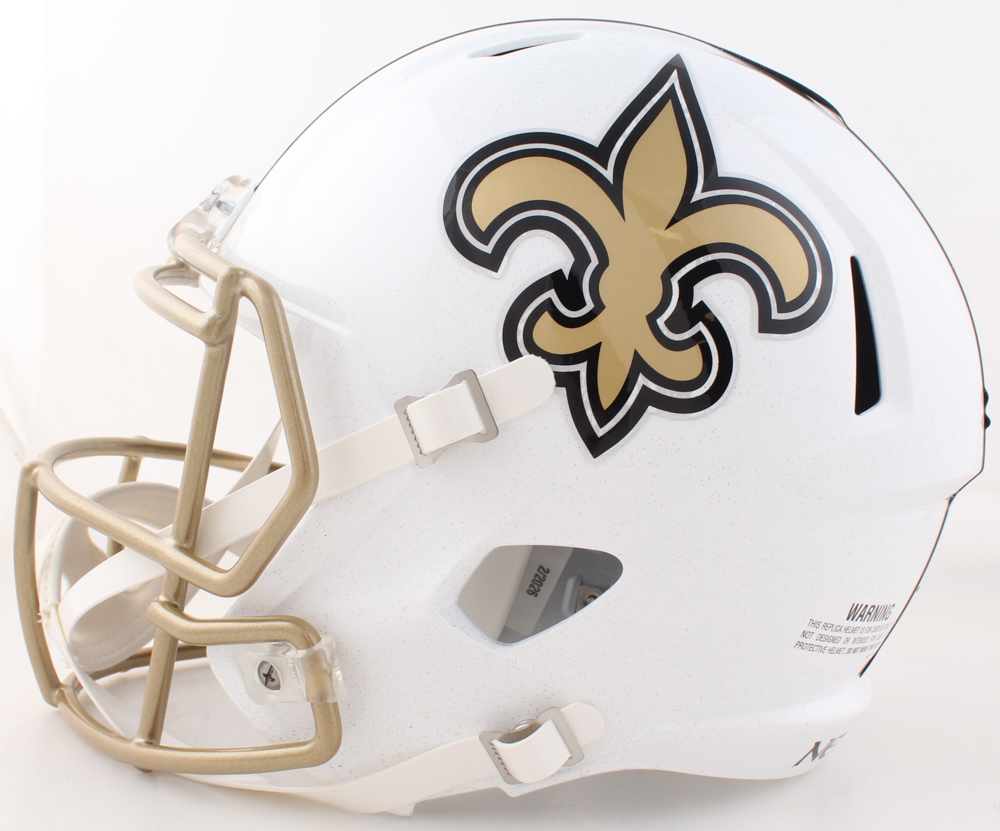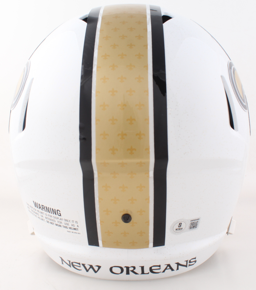 Riddell New Orleans Saints Full-Size Replica Speed Helmet. Hand-signed and inscribed by Drew Brees (HOF).