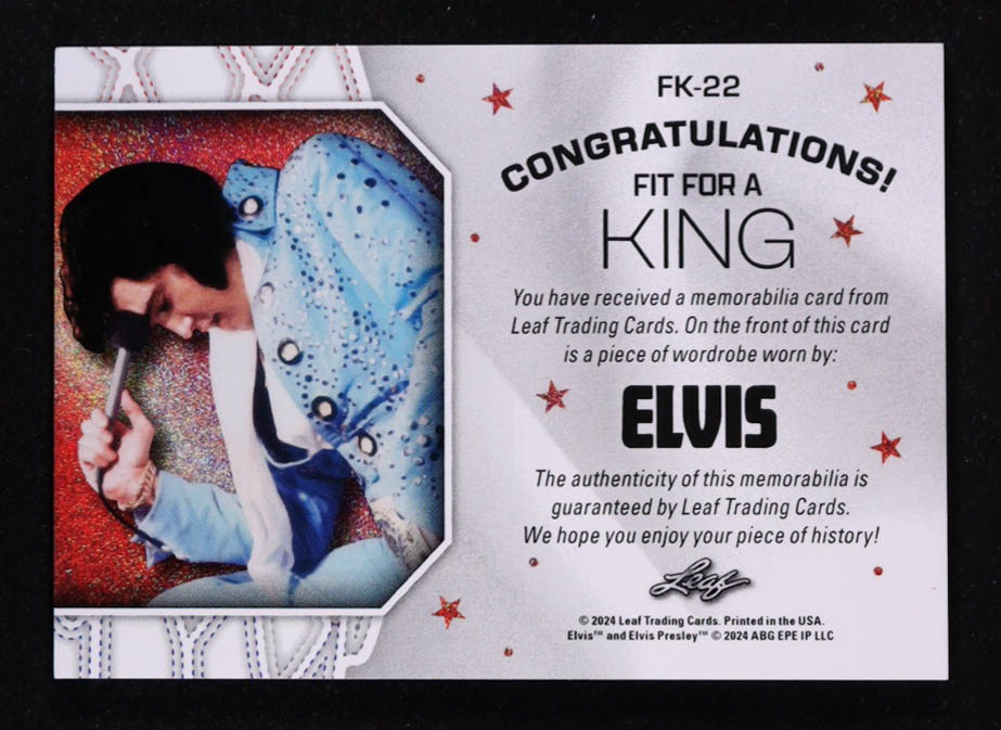 Elvis Presley 2024 Leaf Elvis Presley Icons Collection Fit for a King Memorabilia Green Holofoil #FK22 #37/45