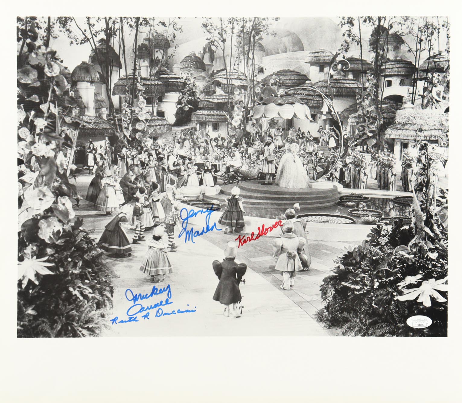 "The Wizard of Oz" 16x18.5 Photo Cast-Signed By (4) with Mickey Carroll, Jerry Maren, Karl Slover & Ruth Duccini (JSA)