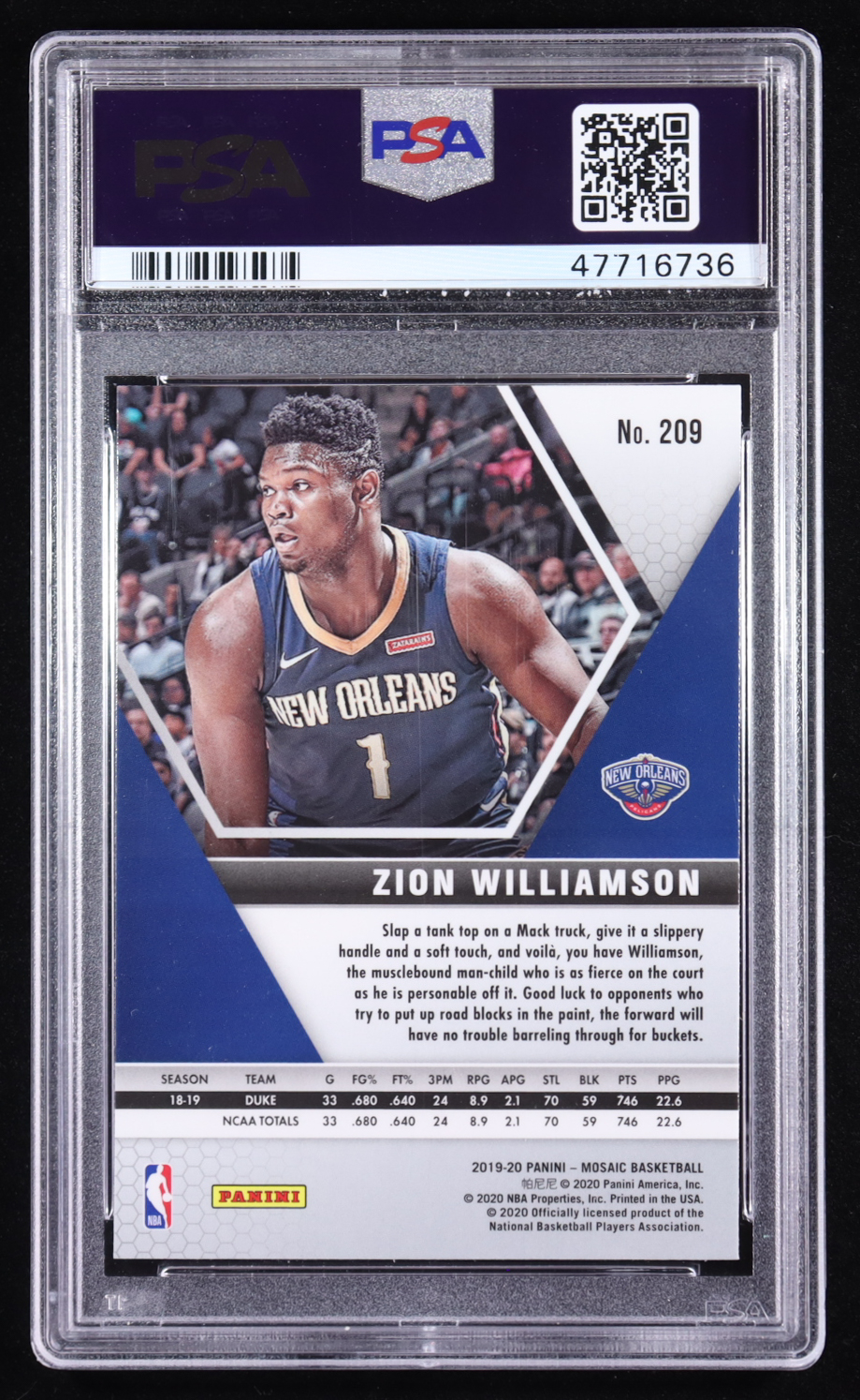 Zion Williamson 2019-20 Panini Mosaic #209 RC (PSA 10)