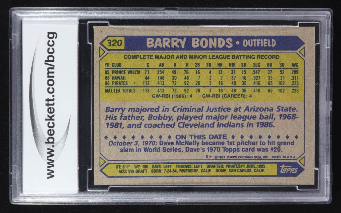 Barry Bonds 1987 Topps #320 RC (BCCG 10)