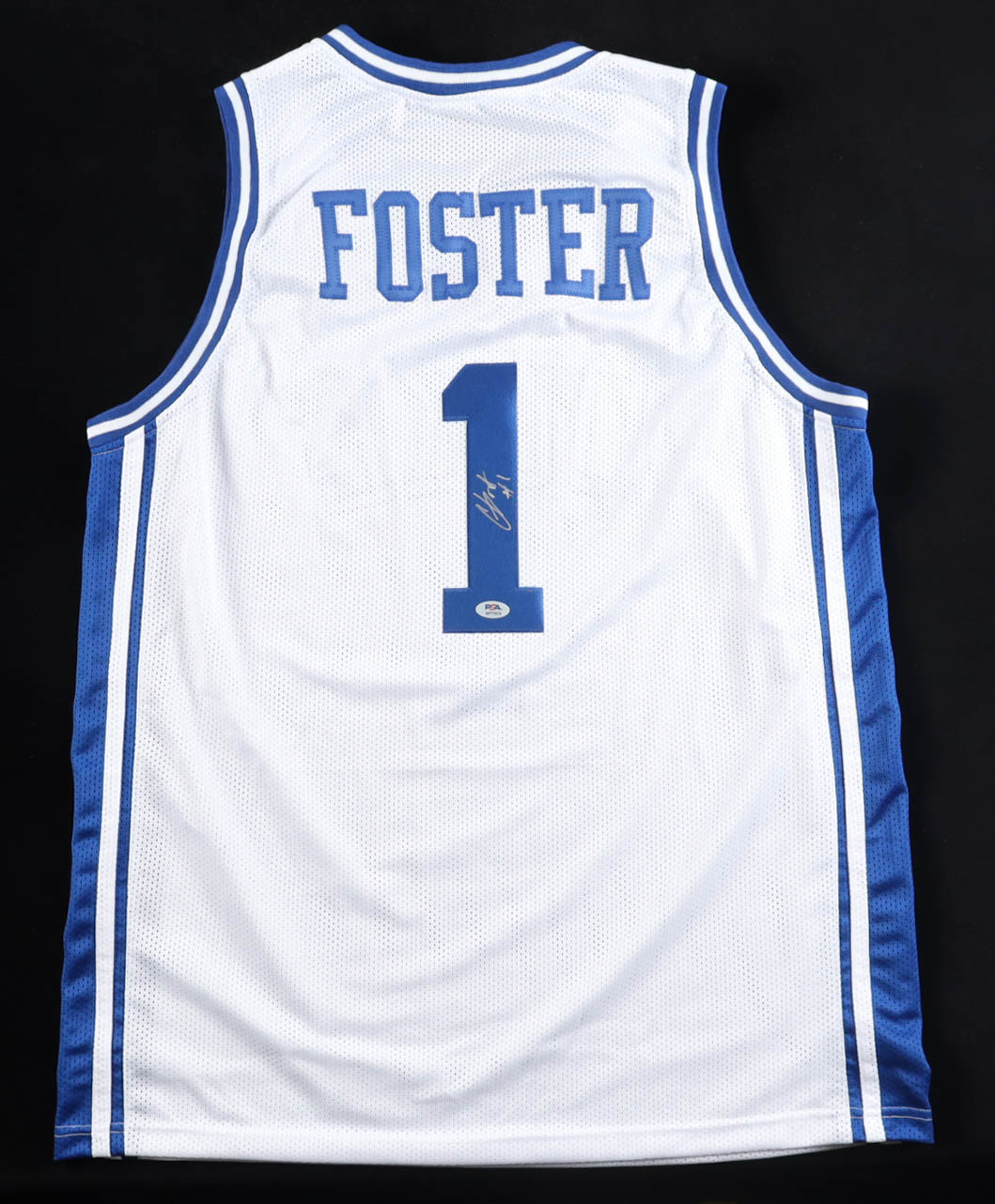 Custom jersey with everything sewn on, size XL. Hand-signed by Caleb Foster.