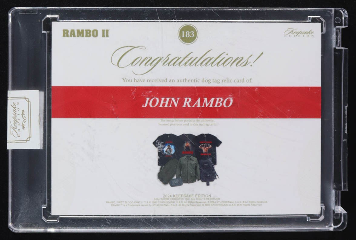 John Rambo 2024 Keepsake Edition Dog Tag Relic Rambo II #183 #39/50