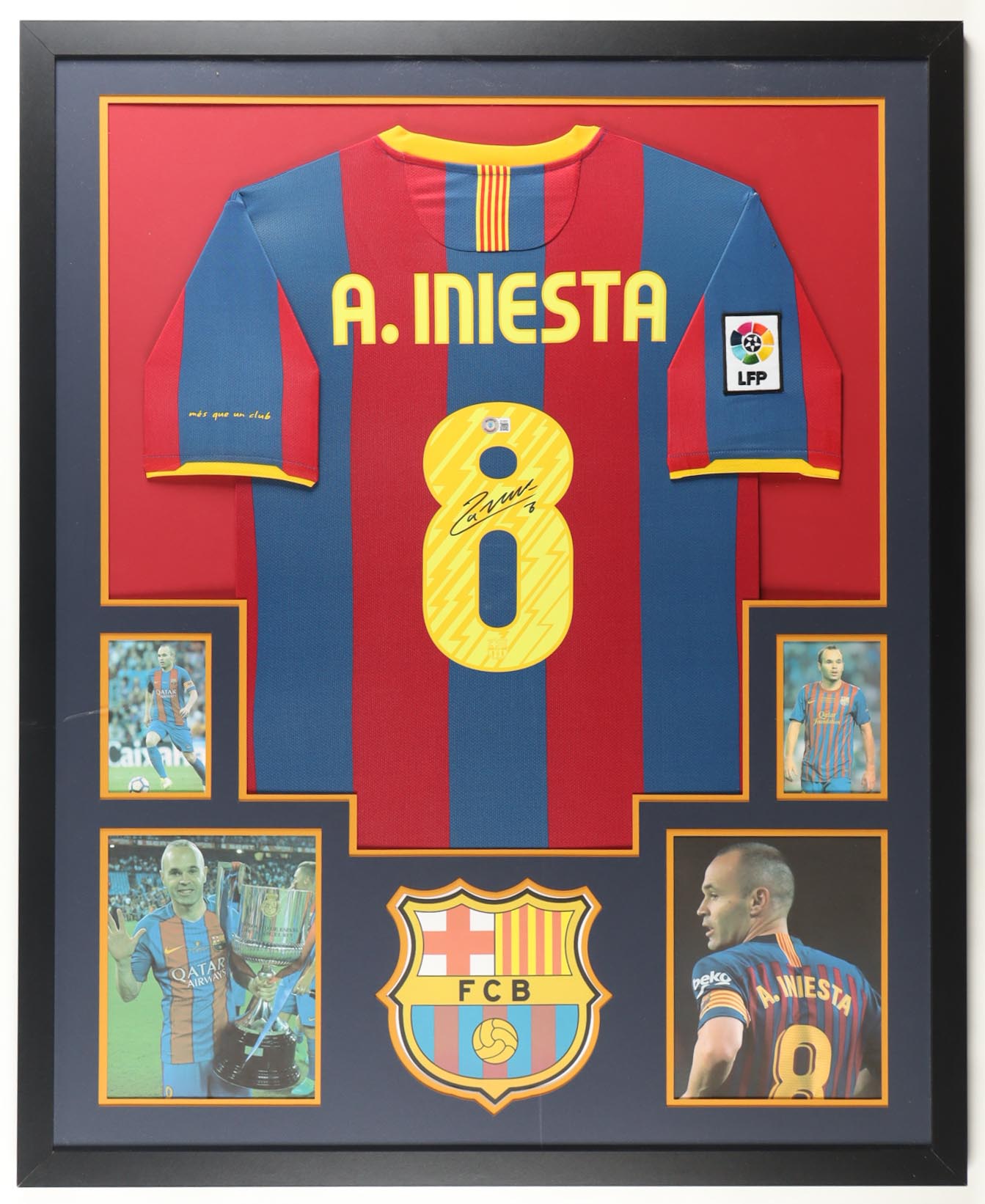Andres Iniesta Signed Custom Framed Jersey Display with Photos (Beckett)