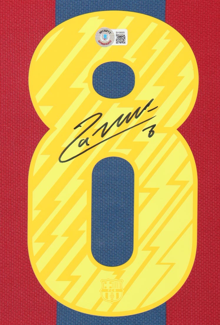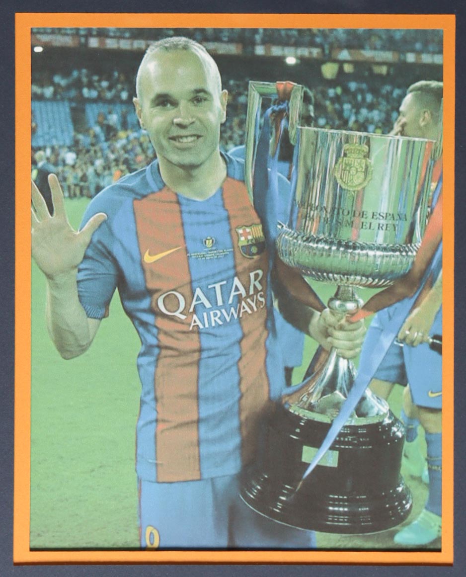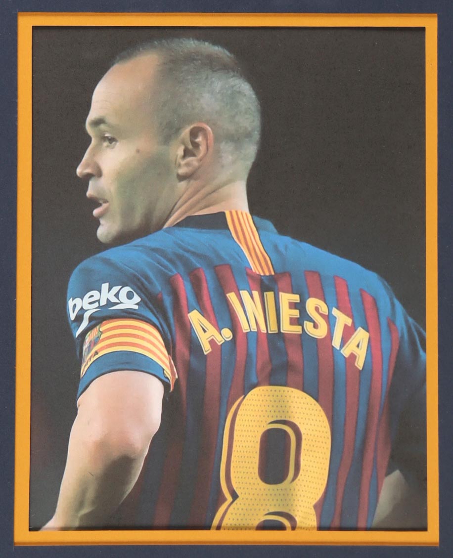 Custom frame measures 34" x 42" in size and features a custom jersey that has been hand-signed by Andres Iniesta (FC Barcelona). Please refer to photos regarding the condition of the item.