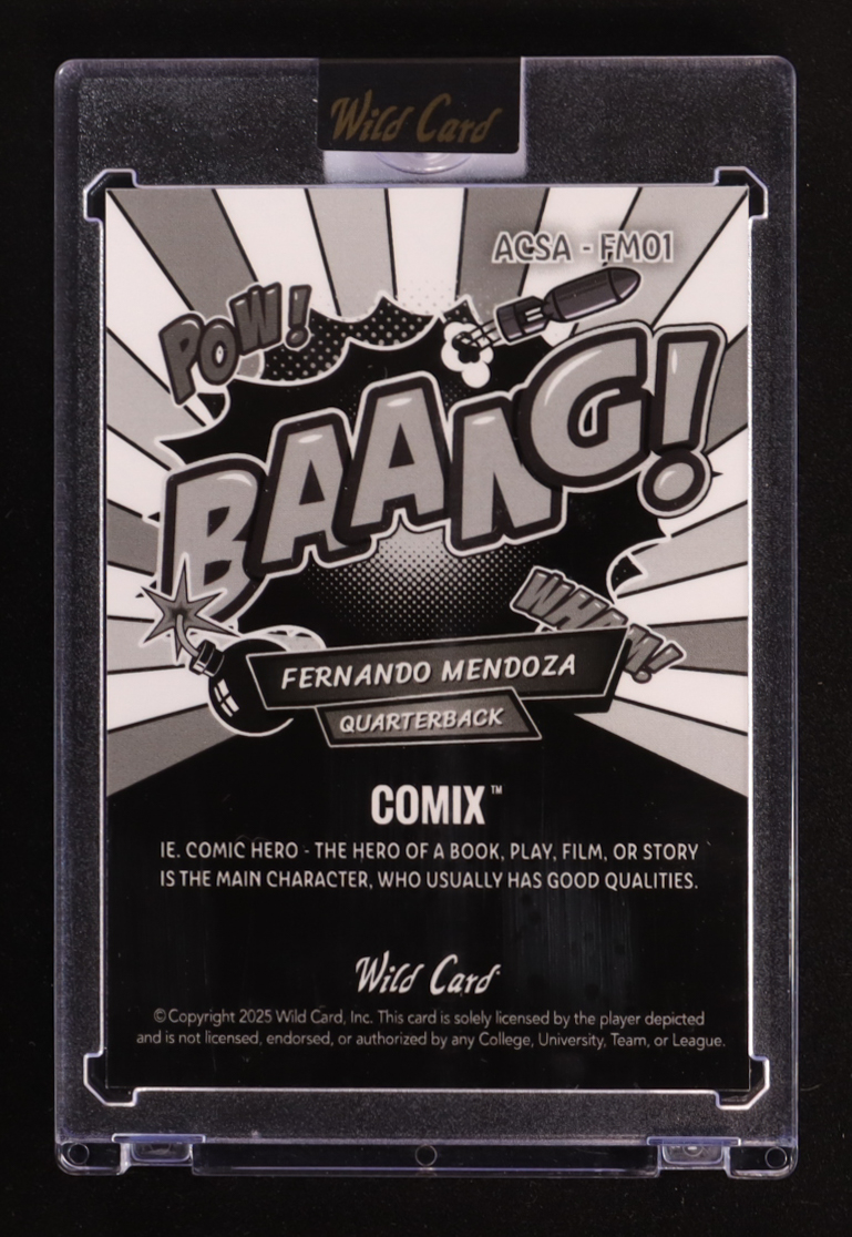 Fernando Mendoza 2025 Wild Card Comix Baang! Color Match True 1 of 1 #FM01 #1/1 RC