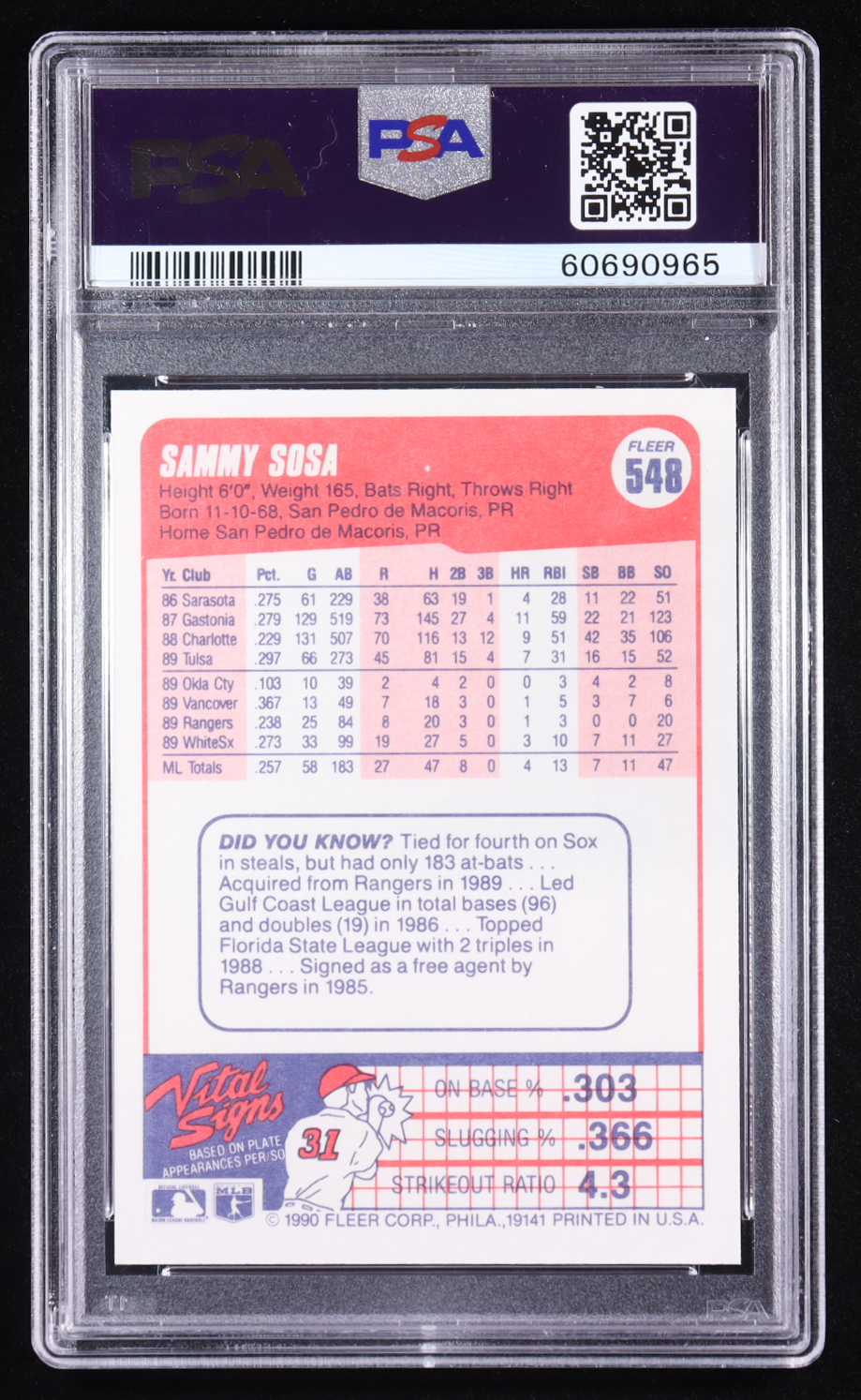 Sammy Sosa 1990 Fleer #548 RC (PSA 9)