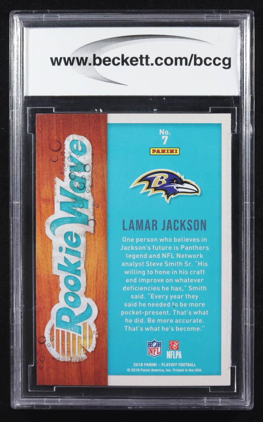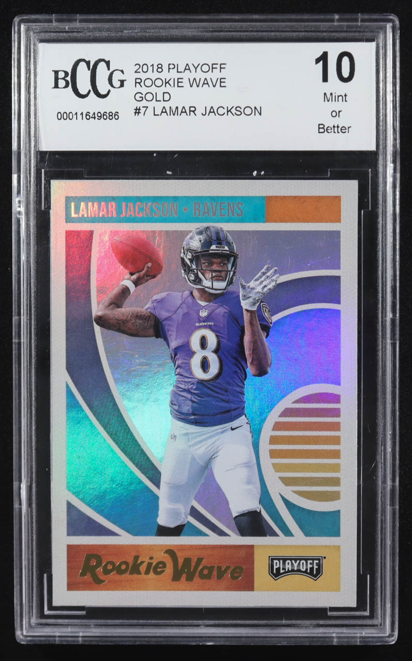 Lamar Jackson 2018 Playoff Rookie Wave Gold #7 RC (BCCG 10)