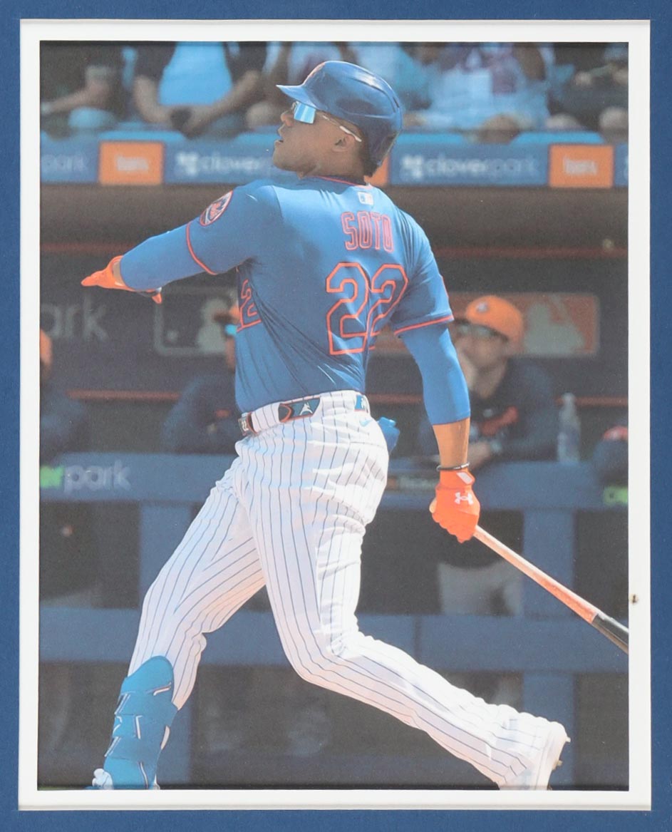 Custom frame measures 34" x 42" in size and features a custom jersey that has been hand-signed by Juan Soto (New York Mets). Please refer to photos regarding the condition of the item.