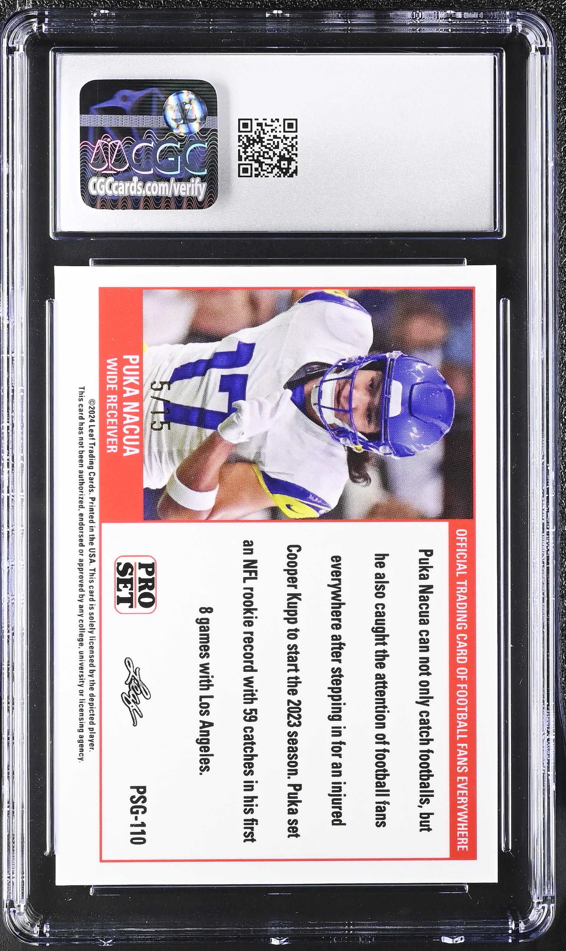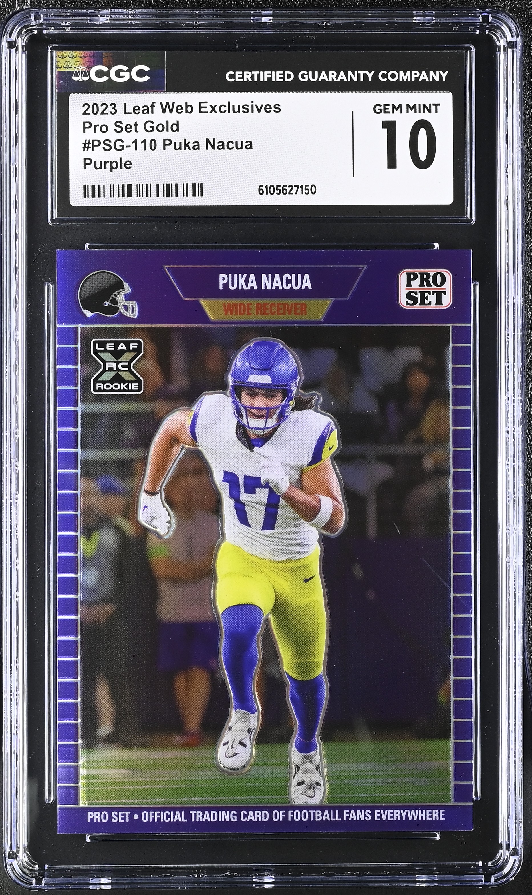Puka Nacua 2023 Leaf Web Exclusives Pro Set Purple #PSG-110 RC #05/15 (CGC GEM MINT 10)