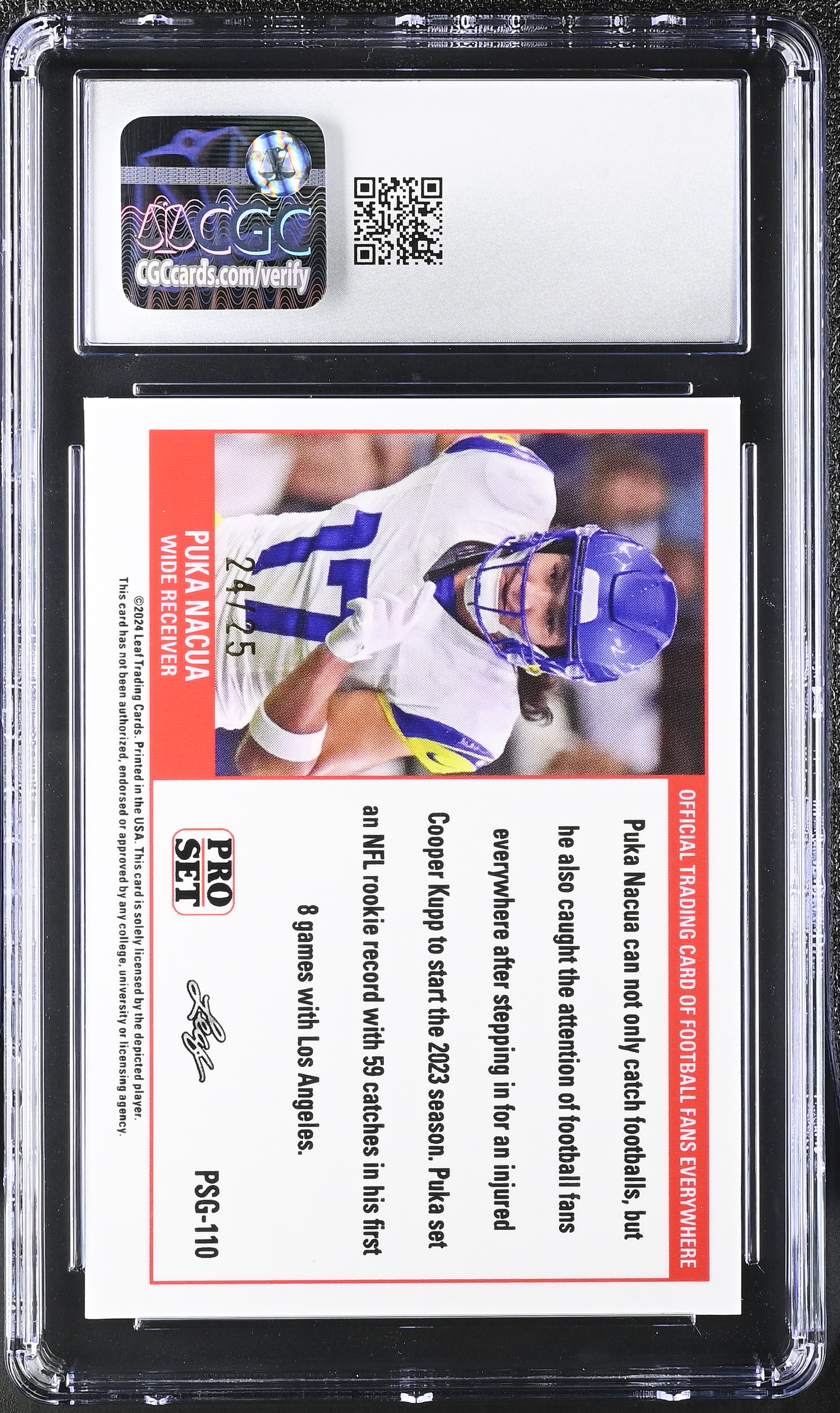 Puka Nacua 2023 Leaf Web Exclusives Pro Set Blue #PSG-110 RC #24/25 (CGC GEM MINT 10)