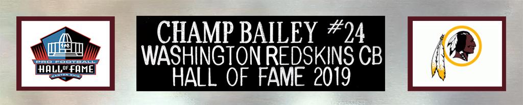 Custom frame measures 35" x 43" in size and features a jersey that has been hand-signed by Champ Bailey (HOF).
