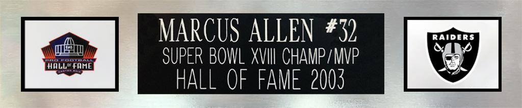 Custom frame measures 35" x 43" in size and features a jersey that has been hand-signed and inscribed by Marcus Allen (HOF).
