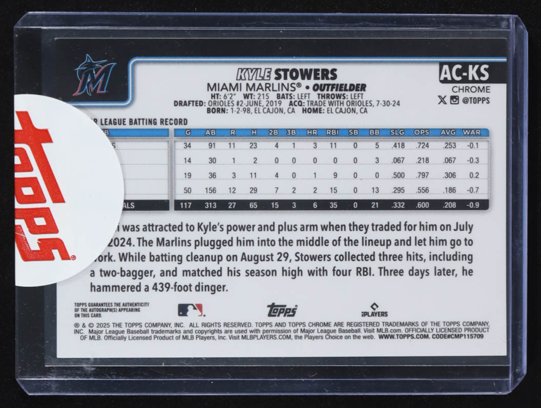 Kyle Stowers 2025 Topps Chrome Auto #AC-KS