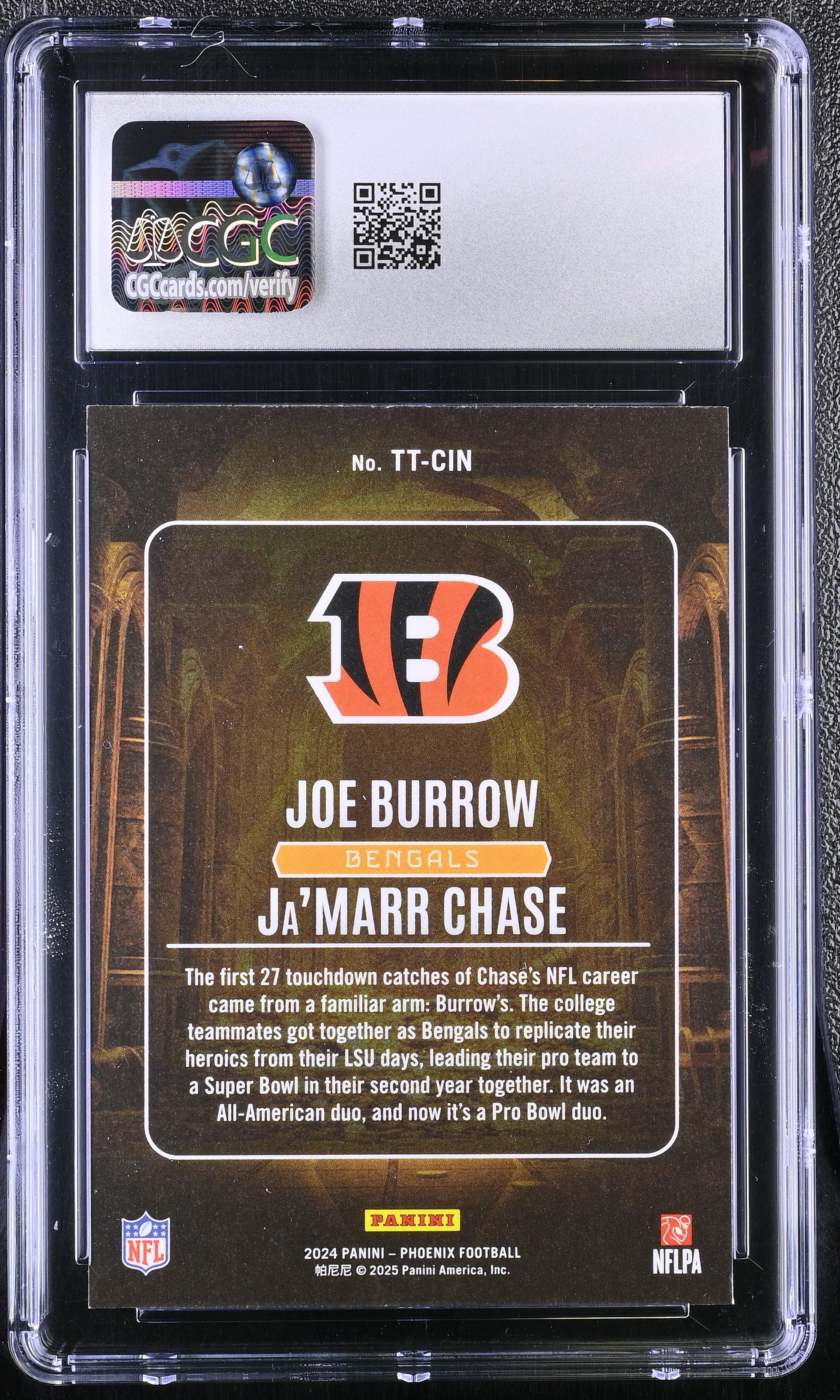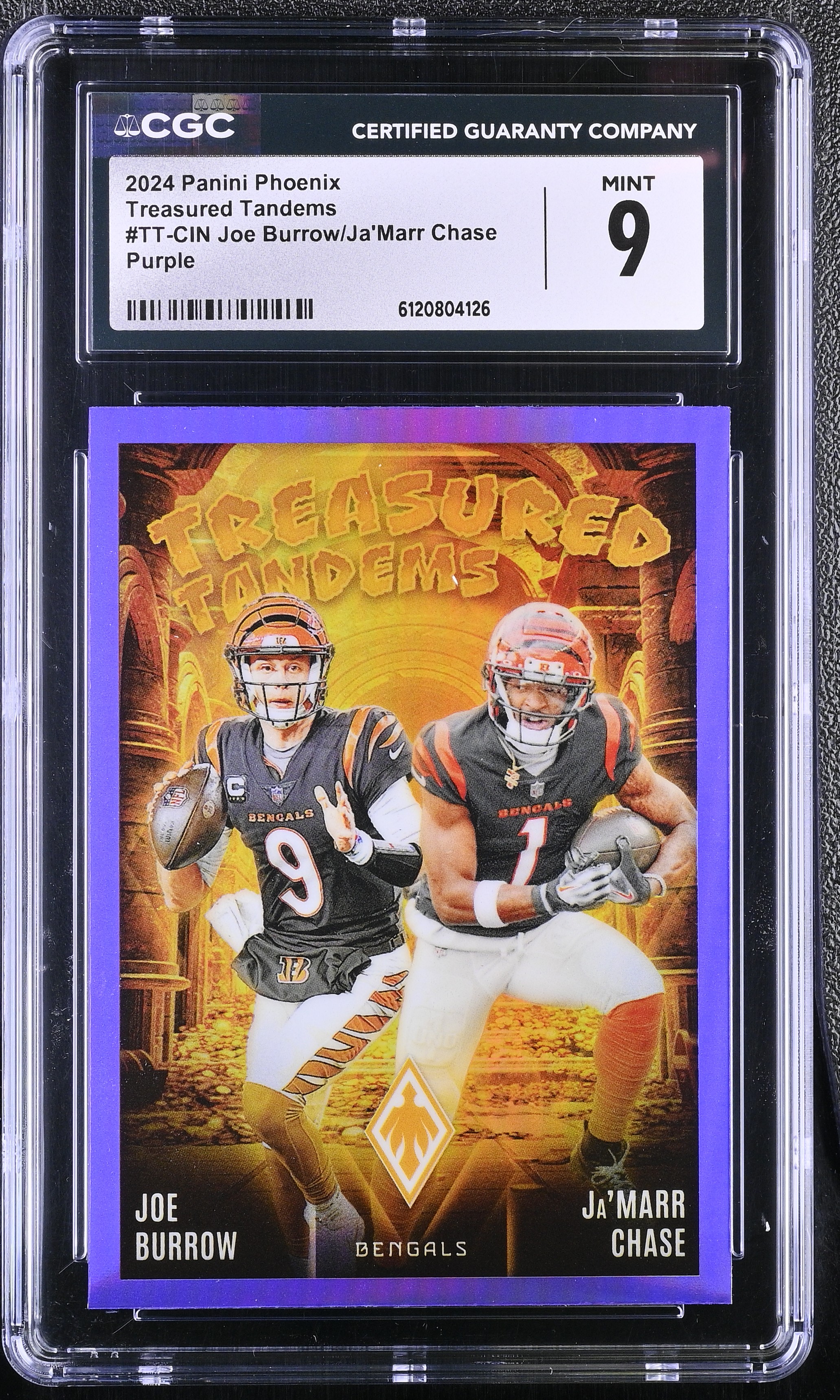 Joe Burrow / Ja'Marr Chase 2024 Panini Phoenix Treasured Tandems Purple #TT-CIN (CGC 9)