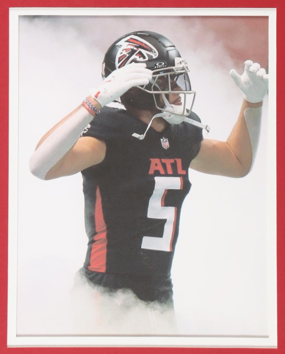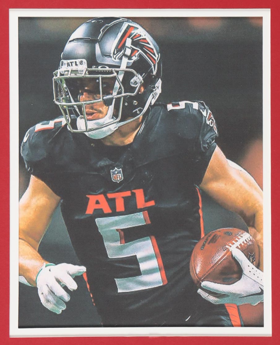 Custom frame measures 34" x 42" in size and features a custom jersey that has been hand-signed by Drake London (Atlanta Falcons). Please refer to photos regarding the condition of the item.