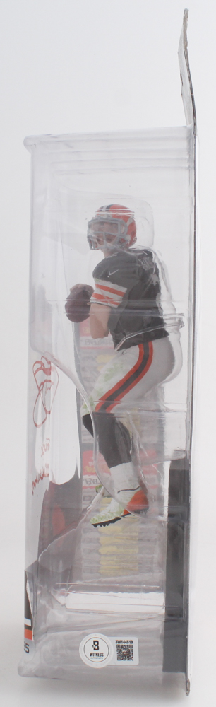 McFarlane Toys 2014 Football NFL Series #35 Action Figure. Hand-signed and inscribed by Johnny Manziel (Cleveland Browns). Please note, there are creases throughout the packaging.