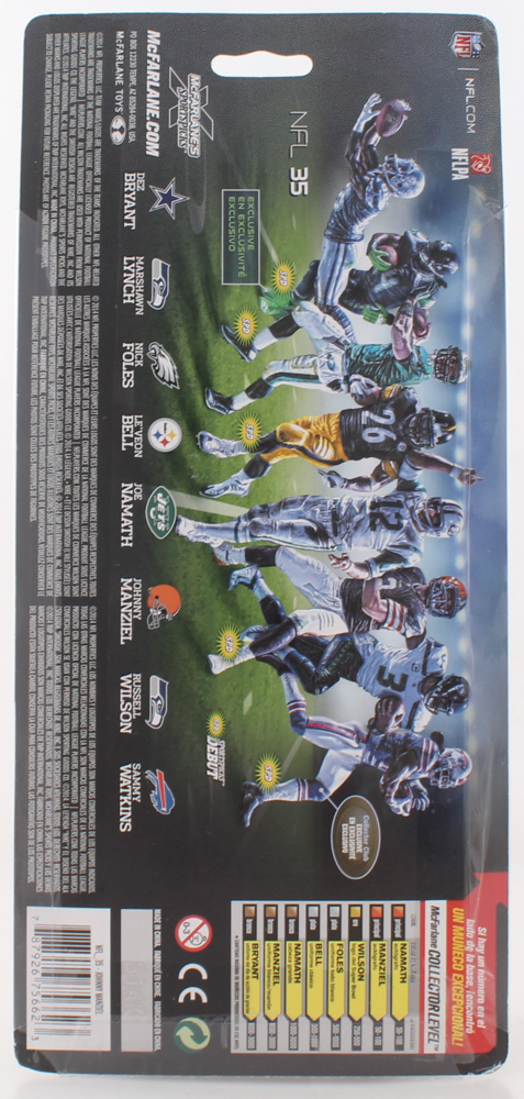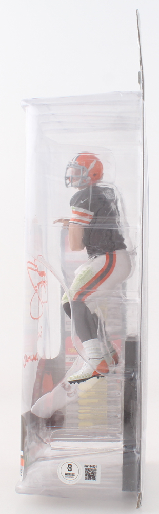 McFarlane Toys 2014 Football NFL Series #35 Action Figure. Hand-signed and inscribed by Johnny Manziel (Cleveland Browns). Please note, there are creases throughout the packaging and the football has come off.