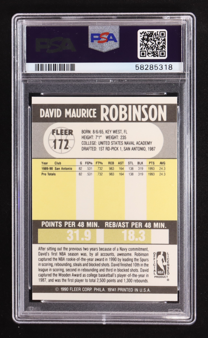 David Robinson 1990 Fleer #172 RC (PSA 9)