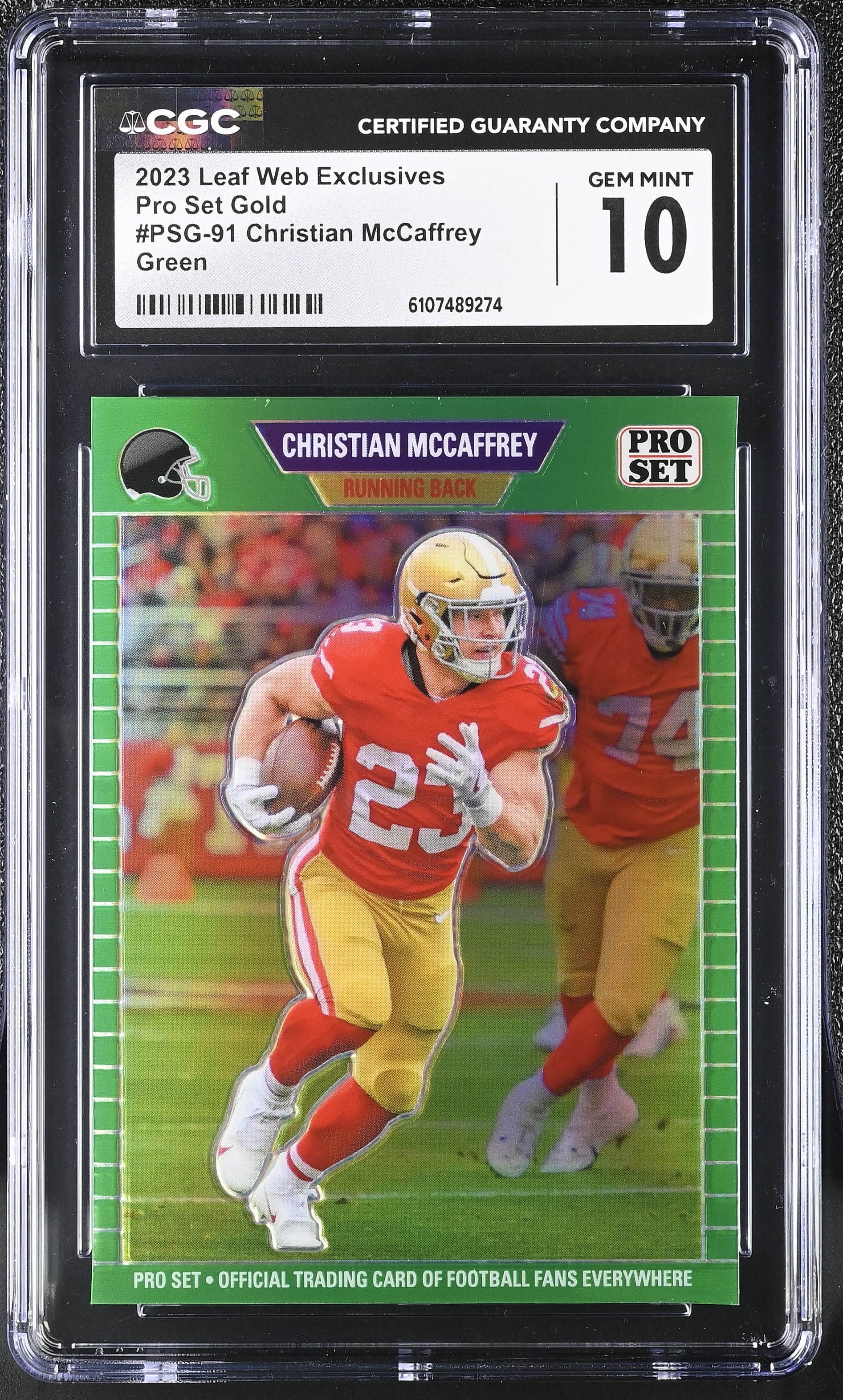 Christian McCaffrey 2023 Leaf Web Exclusives Pro Set Green #PSG-91 03/10 (CGC GEM MINT 10)
