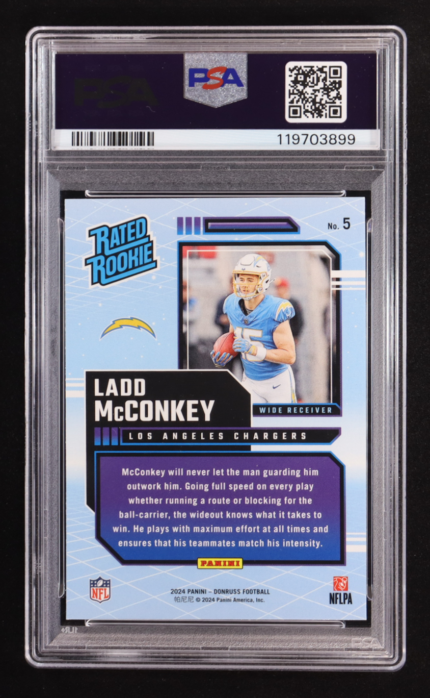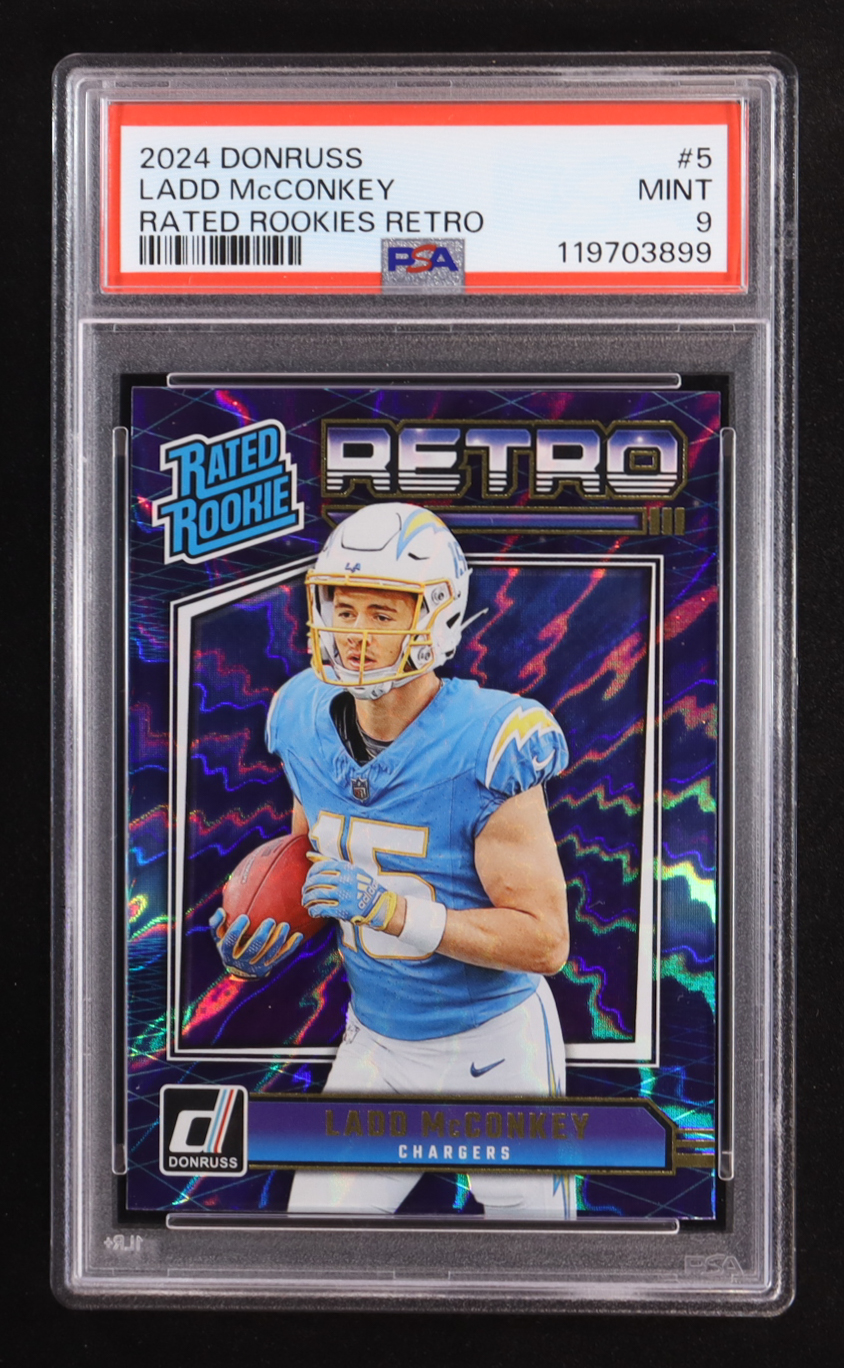 Ladd McConkey 2024 Panini Donruss Rated Rookies Retro #5 RC (PSA 9)