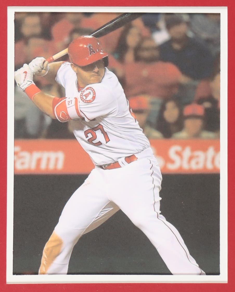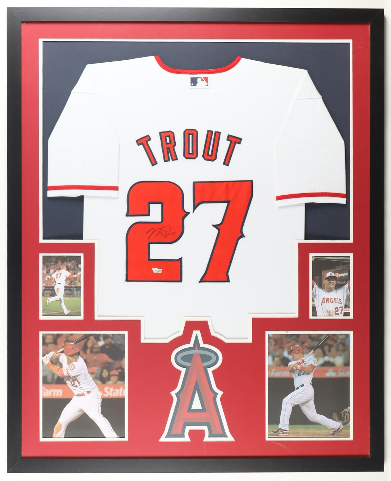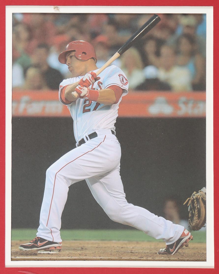 Custom frame measures 34" x 42" in size and features a custom jersey that has been hand-signed by Mike Trout (Los Angeles Angels). Please refer to photos regarding the condition of the item.