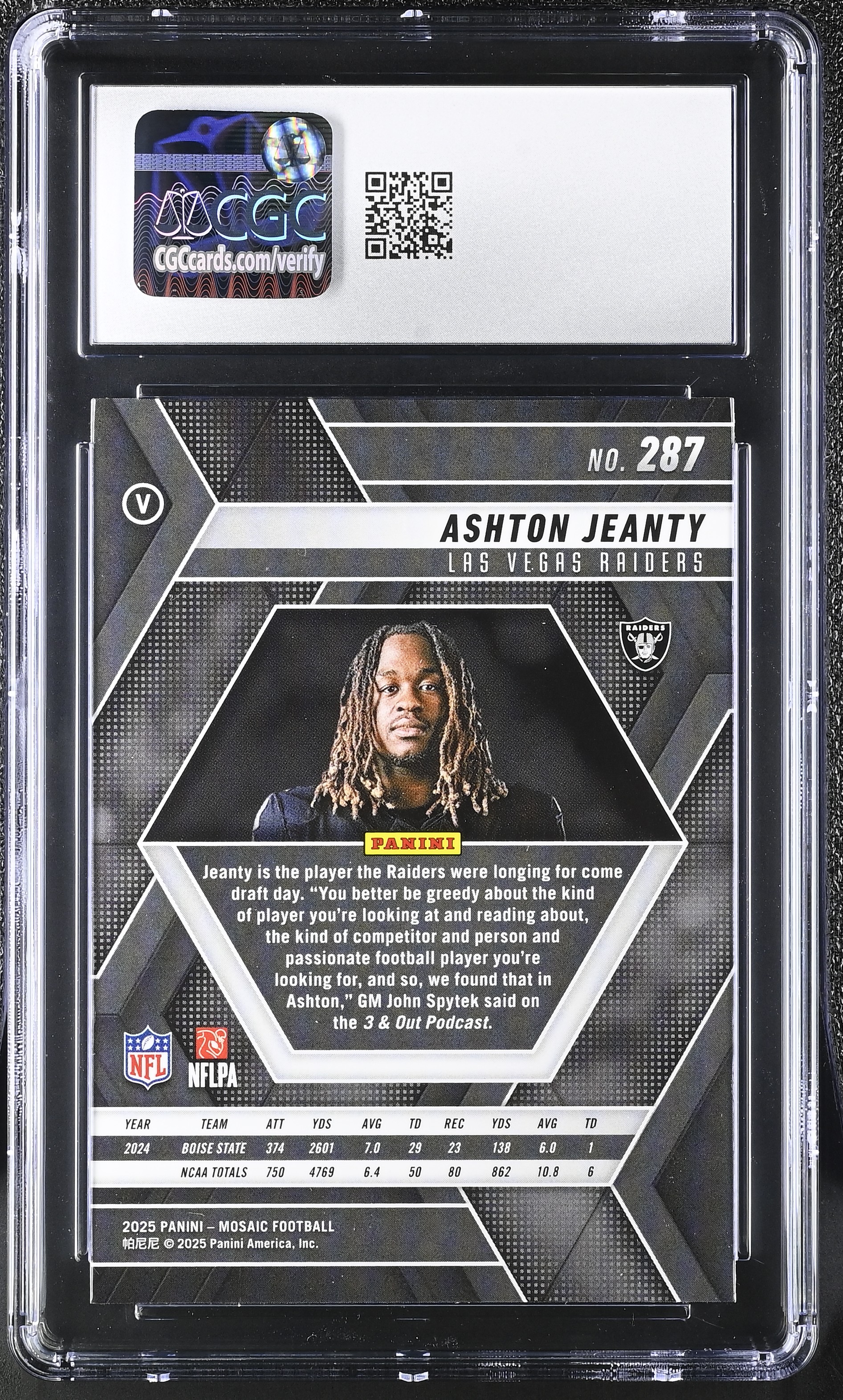 Ashton Jeanty 2025 Panini Mosaic #287 VAR RC (CGC 9.5)
