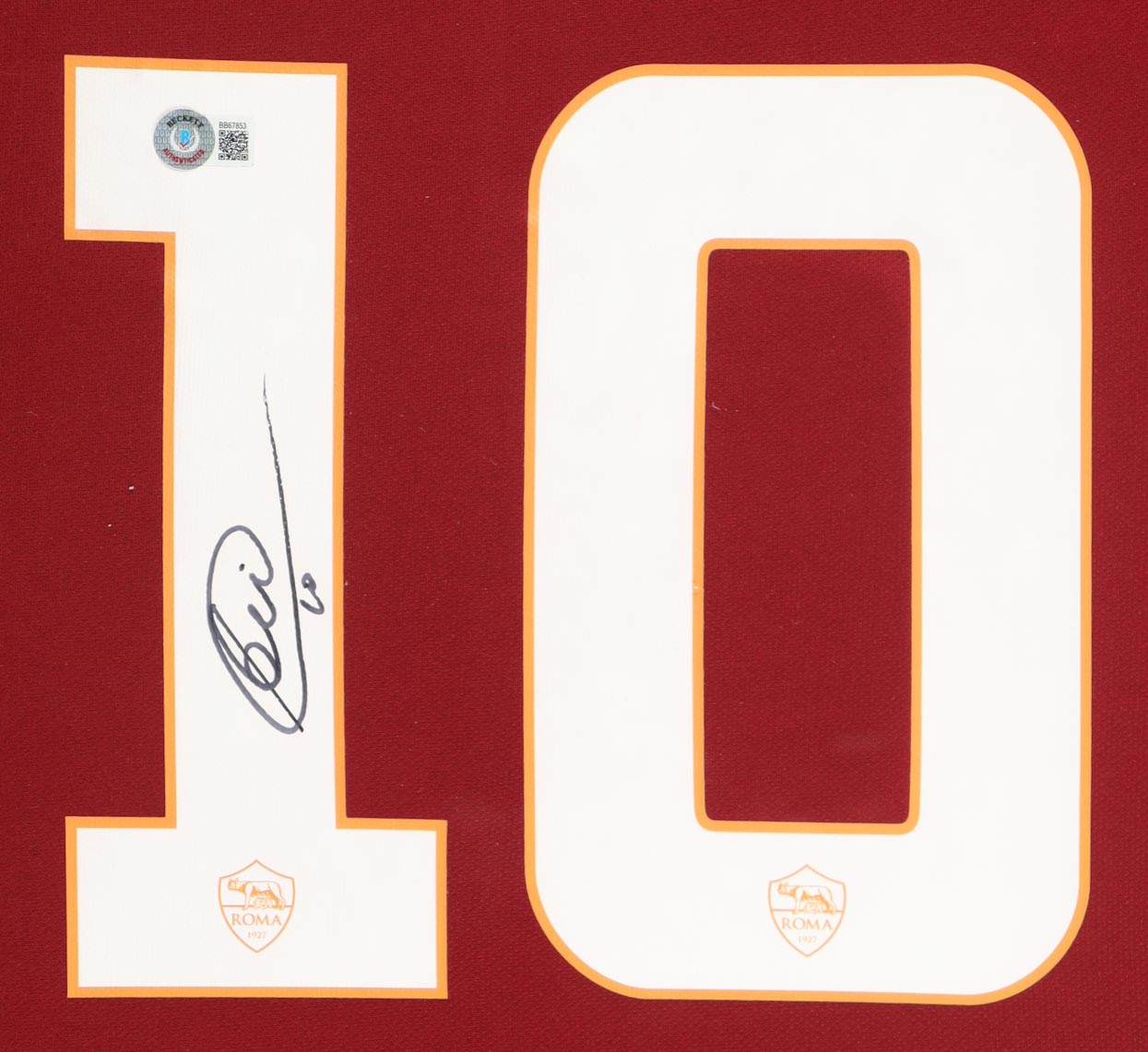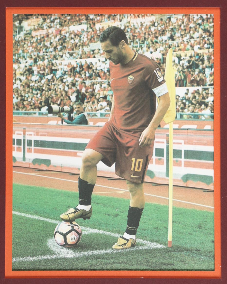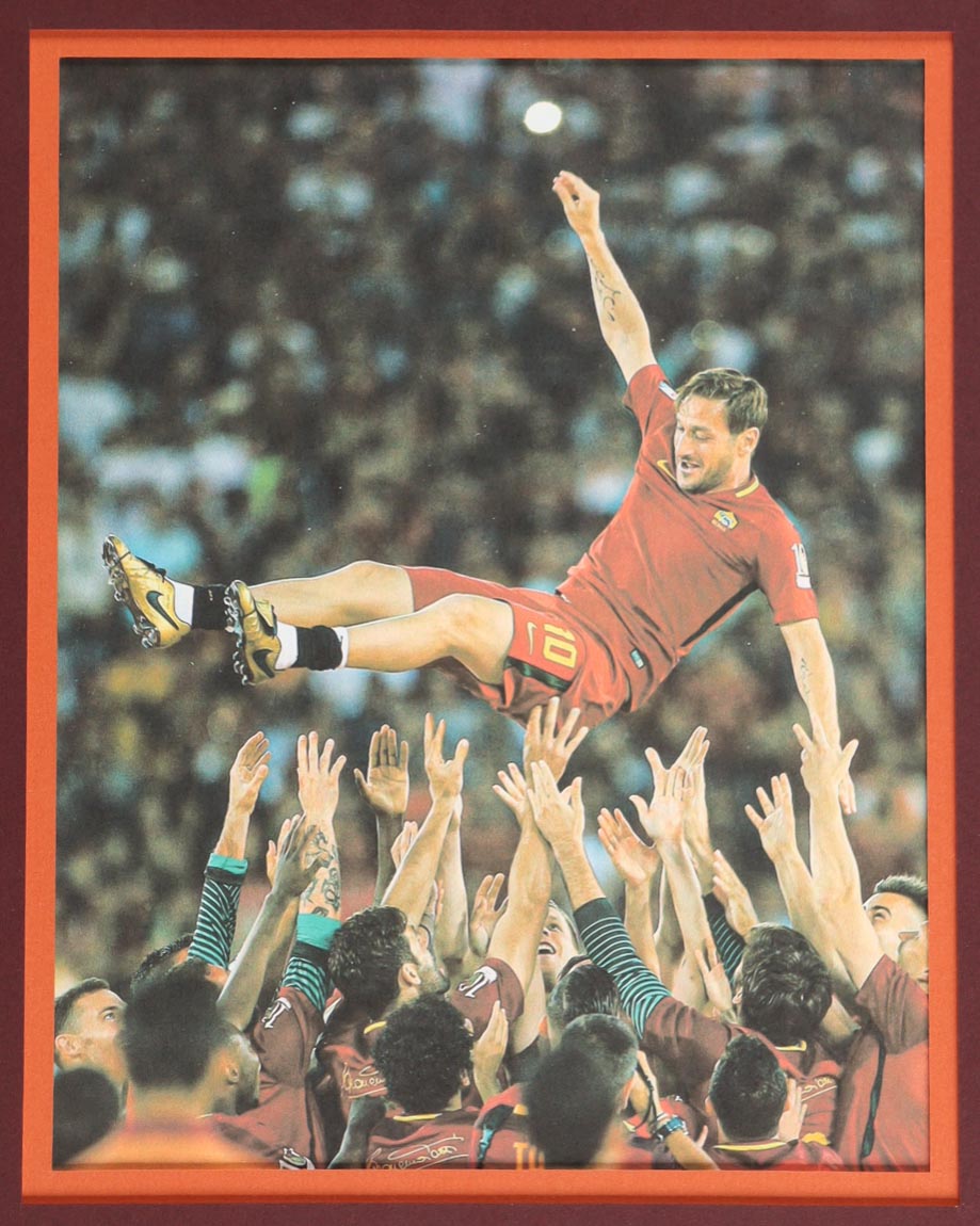 Custom frame measures 34" x 42" in size and features a custom jersey that has been hand-signed by Francesco Totti (AS Roma). Please refer to photos regarding the condition of the item.