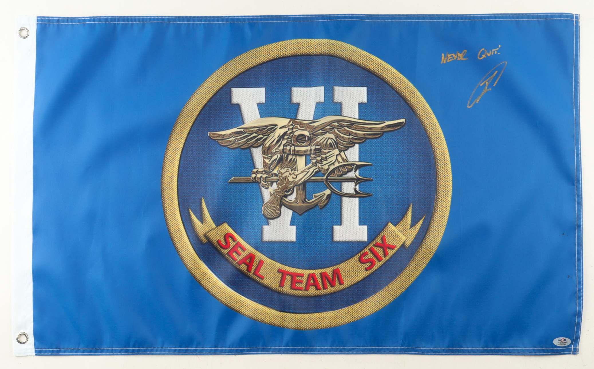 Robert O'Neill Signed 18x30 "Seal Team 6" Flag Inscribed "Never Quit!" (PSA)