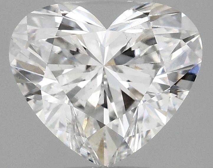 This diamond weighs 1.73 carats and displays a bright E color with VS2 clarity, offering excellent brilliance and a near colorless appearance. The well balanced proportions and brilliant faceting provide strong light performance while maintaining the attractive symmetrical heart outline.