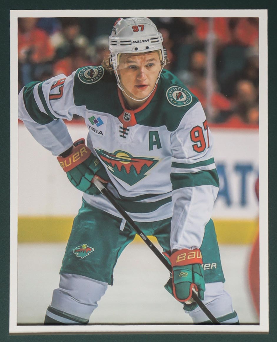 Custom frame measures 34" x 42" in size and features a authentic Adidas jersey that has been hand-signed by Kirill Kaprizov (Minnesota Wild). Please refer to photos regarding the condition of the item.
