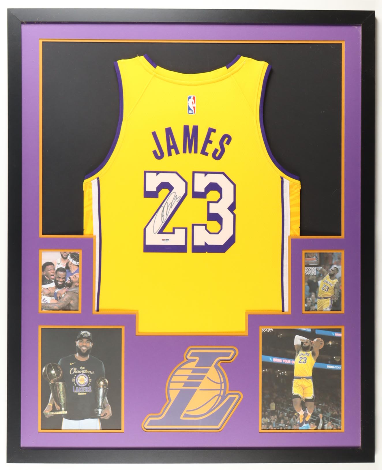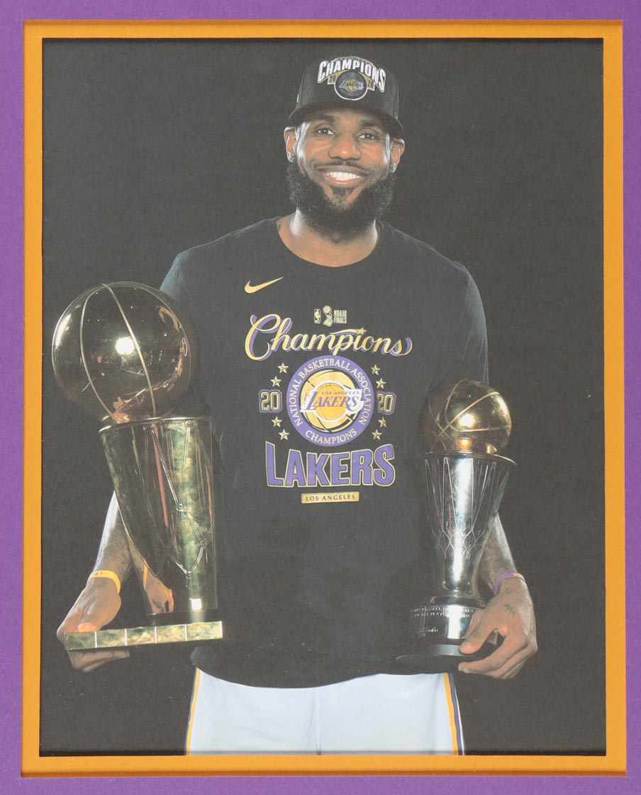 Custom frame measures 34" x 42" in size and features a custom jersey that has been hand-signed by LeBron James (Los Angeles Lakers). Please refer to photos regarding the condition of the item.