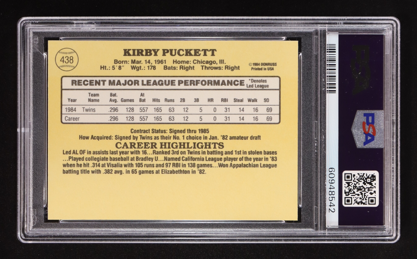 Kirby Puckett 1985 Donruss #438 RC (PSA 8)