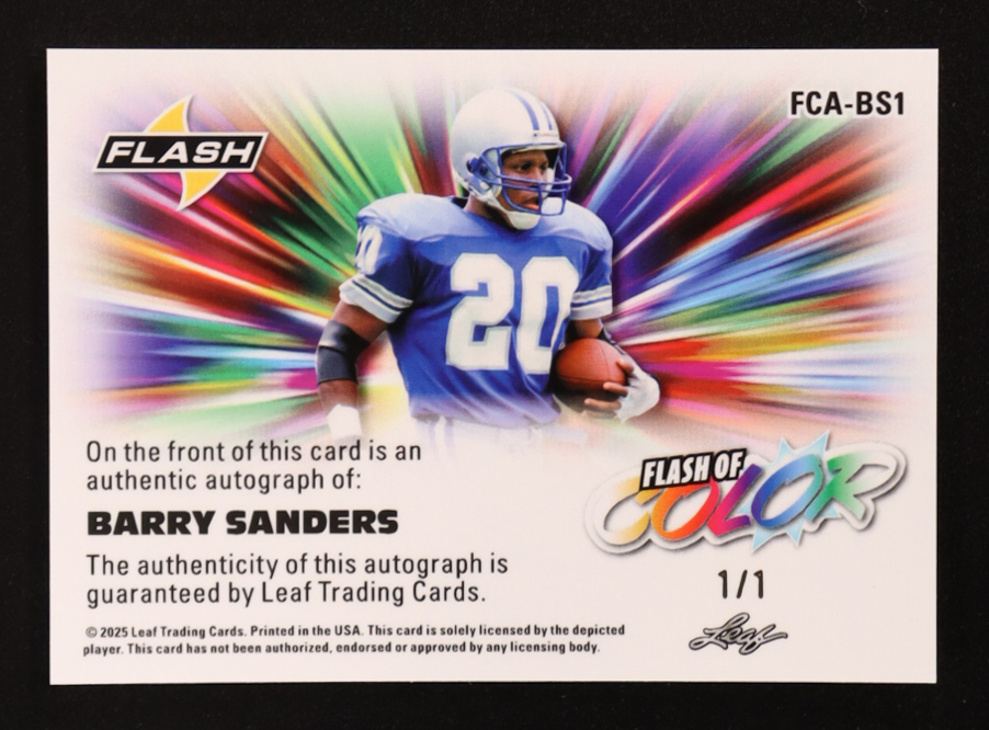 Barry Sanders 2025 Leaf Flash Autographs Pink Wave #FCA-BS1 #1/1
